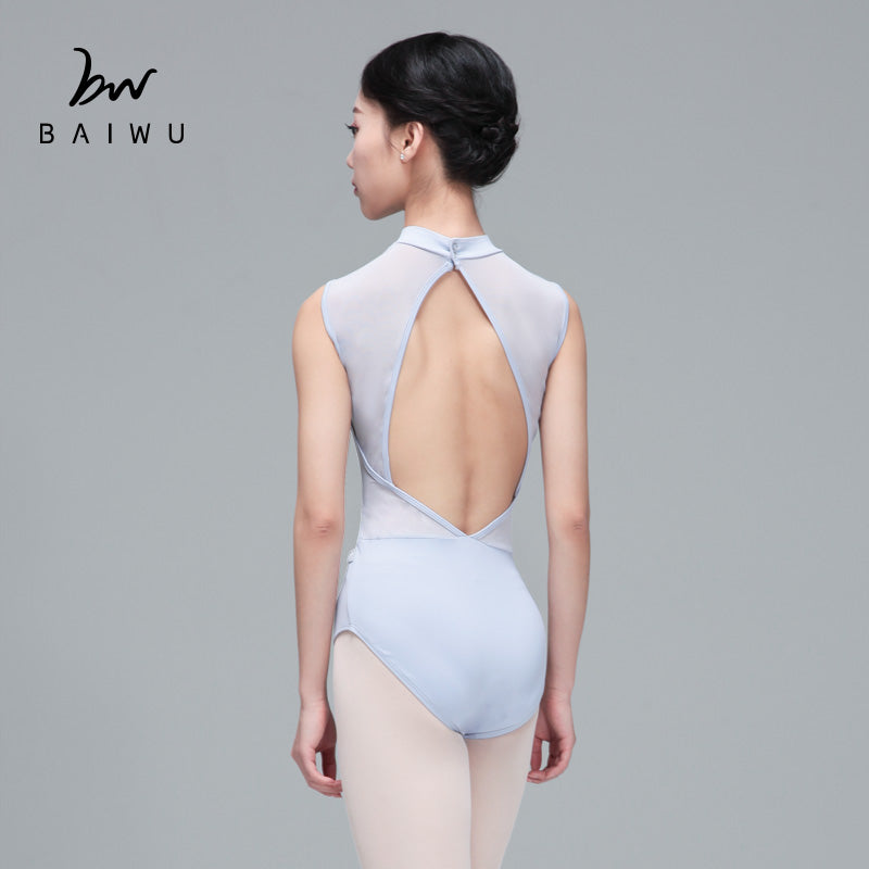 Make a statement in this elegant high neck sleeveless leotard, featuring a refined Chinese-style collar, open mesh back, and secure clasp closure. Blending traditional charm with a modern silhouette, this leotard offers both standout style and performance-ready comfort.