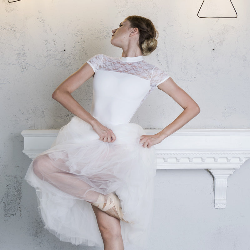 Elevate your dancewear with this elegant cap sleeve leotard, featuring a refined high turtleneck and a delicate floral lace back secured by a discreet popper clasp. Perfectly blending sophistication with support, it creates a stunning silhouette ideal for rehearsals and performances.